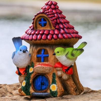 Bird and Log Cabin Solar Light Rural Resin Garden Decorative LED Ground Lighting in Brown