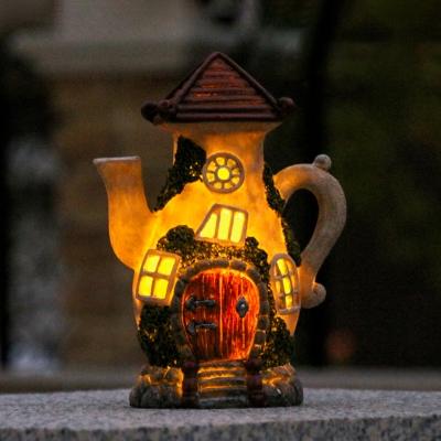 Beige Kettle House LED Ground Light Cartoon Resin Solar Operated Path Lighting for Yard